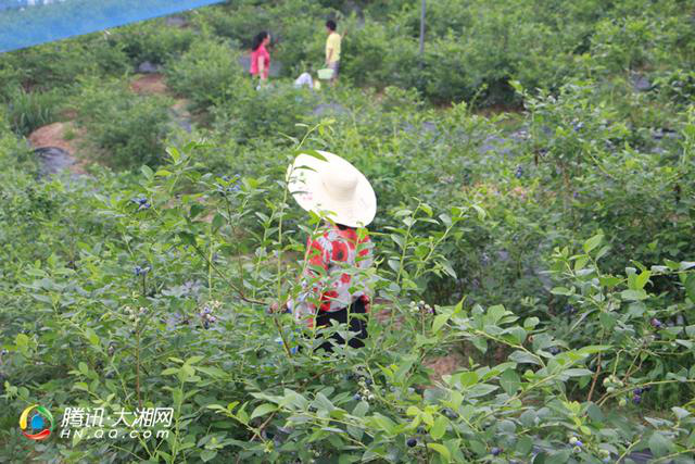 在这200亩的山坡上,一株株1人高左右的灌木上挂满了一串串果粒饱满、颜色深蓝的的蓝莓果,三五成行的游客在蓝莓园里尽情采摘、拍照、嬉戏。很难想象四年前,这里还是一片无人问津的荒山,黄德良却在这里成就了自己湖南“蓝莓大王”的梦想。